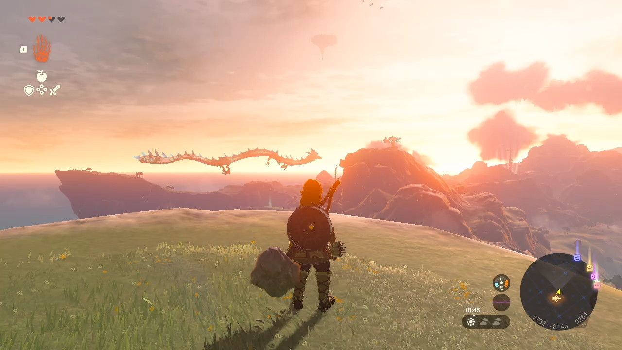I’ve been playing Tears of the Kingdom recently after borrowing my boyfriend’s copy. It’s a lot of fun – Breath of the Wild is one of my favourite games, and I wanted to delve back into the same world with the same feel but with new things to do, so it’s pretty perfect for me right now. I wanted to share some thoughts, and a few pictures from my recent adventures, if you would like to peruse. :] Without further ado, here’s a little glimpse into my experience forty-or-so hours into The Legend of Zelda: Tears of the Kingdom.